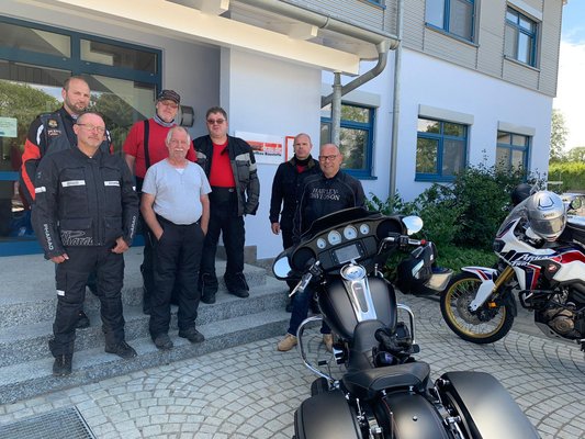 Freitagnachmittag startete die Ausfahrt für unsere Biker in die Fränkische Schweiz nach Lichtenfels. Nach 220 km Fahrt erreichten unsere Motorradtruppe das Hotel ,,Krone“. Am nächsten Morgen fuhren sie nach einem reichhaltigen Frühstück weiter durch die Gemeinde Ahorntal, ein kleiner Zwischenstopp an der Burg Rabenstein durfte dabei natürlich nicht fehlen. Nach einer weiteren Rundfahrt bei bestem Wetter, ging es mit einem Floß auf dem Main weiter. Mit einem deftigen Abendessen haben sie den Tag gemeinsam ausklingen lassen.
